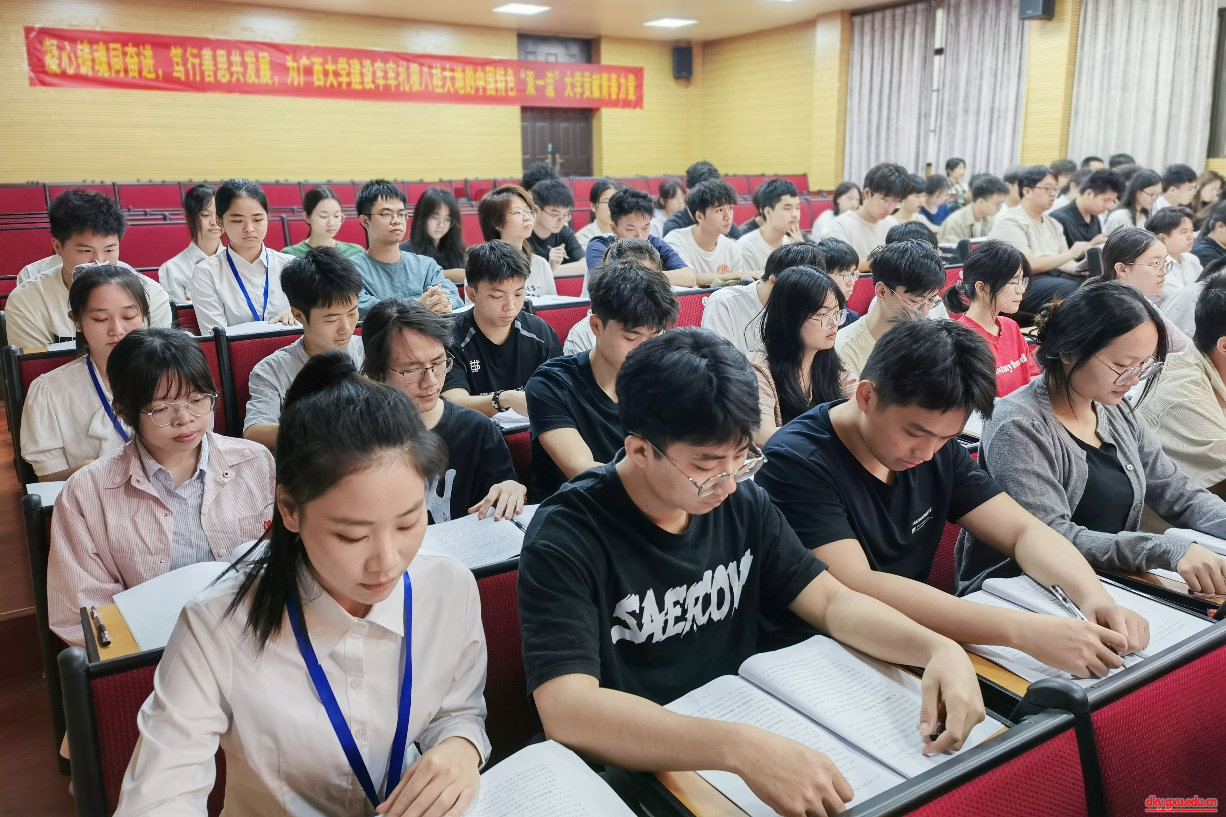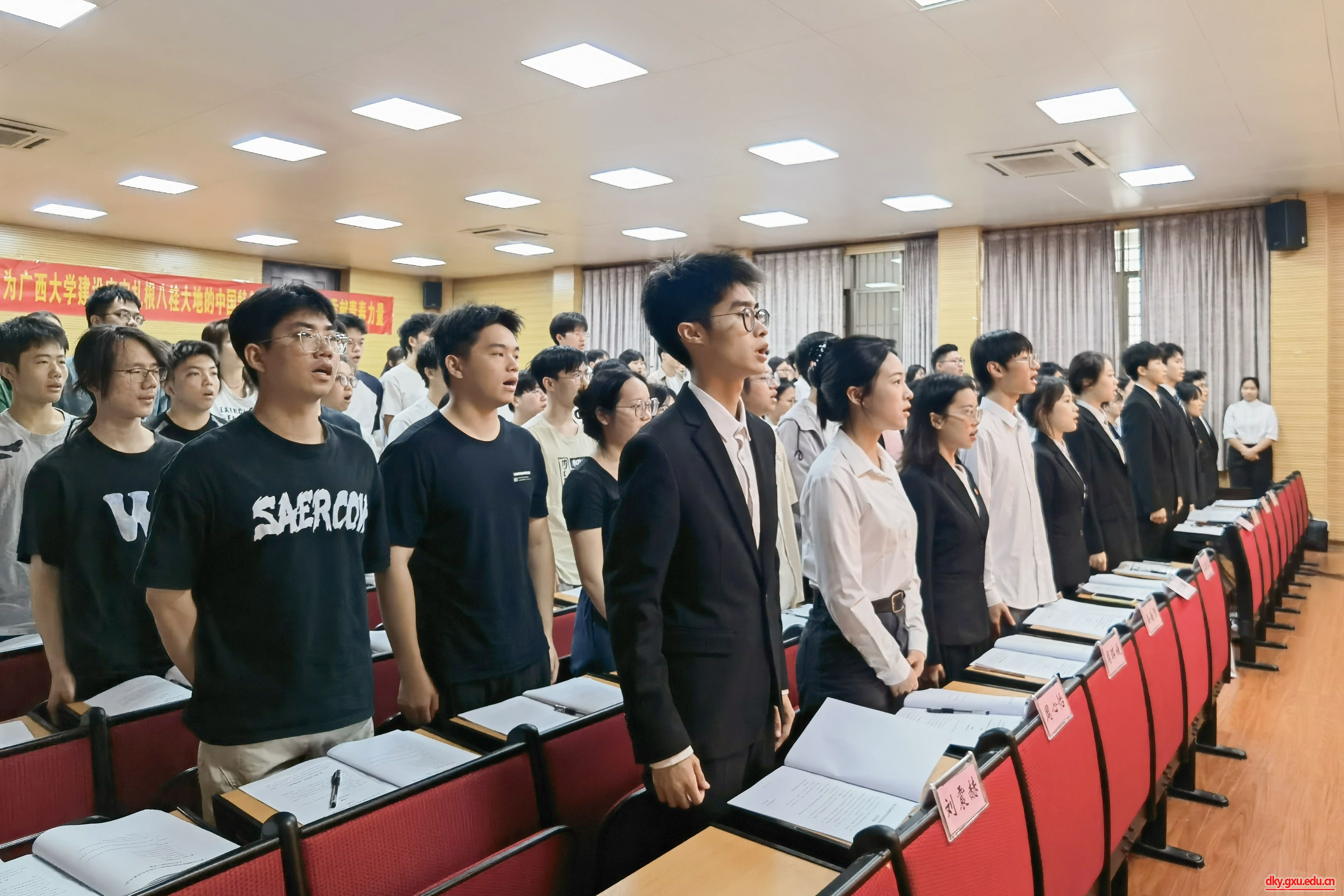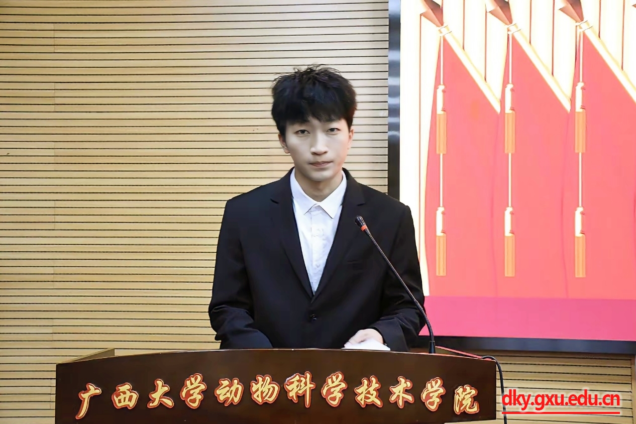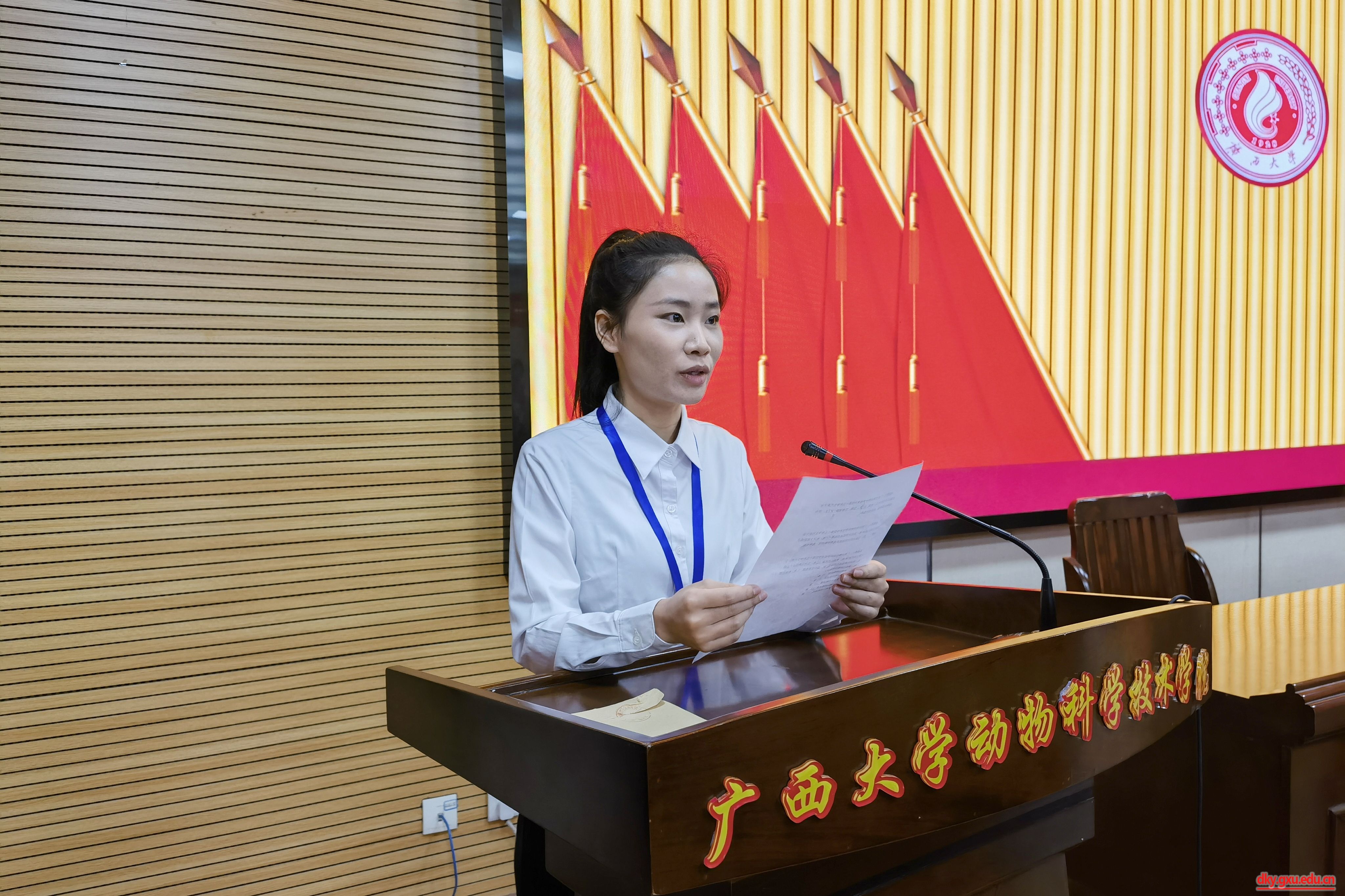 广西大学学生会执行主席黎栗蓉同学、体育学院学生会执行主席侯文坚同学分别在大会上致辞。