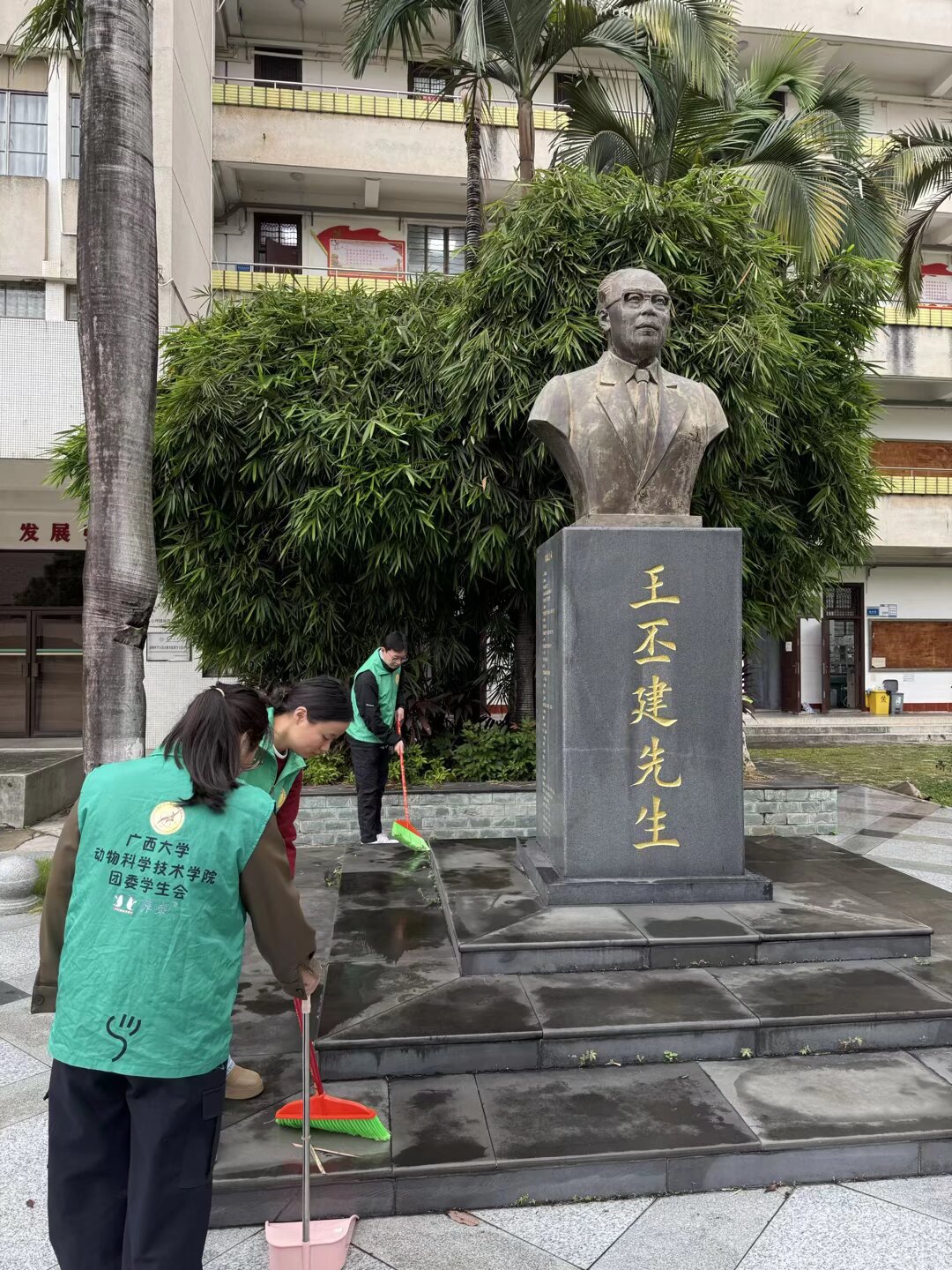 参与活动的25级新生李同学感慨地说:“以前路过这里,只知道先生是学校的前辈,但并不了解他的具体事迹。这次一边清扫,一边听学长学姐讲述先生的故事,我不仅亲手守护了校园的纪念地标,更对学校的历史有了更深的了解,也更加敬佩先生了。”