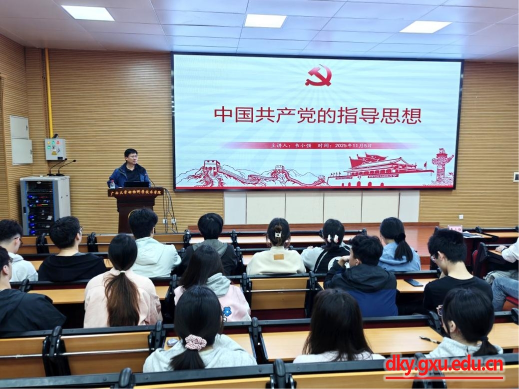 之后,韦小强以《中国共产党的指导思想》为主题,为本期入党积极分子培训班学员讲授专题党课。