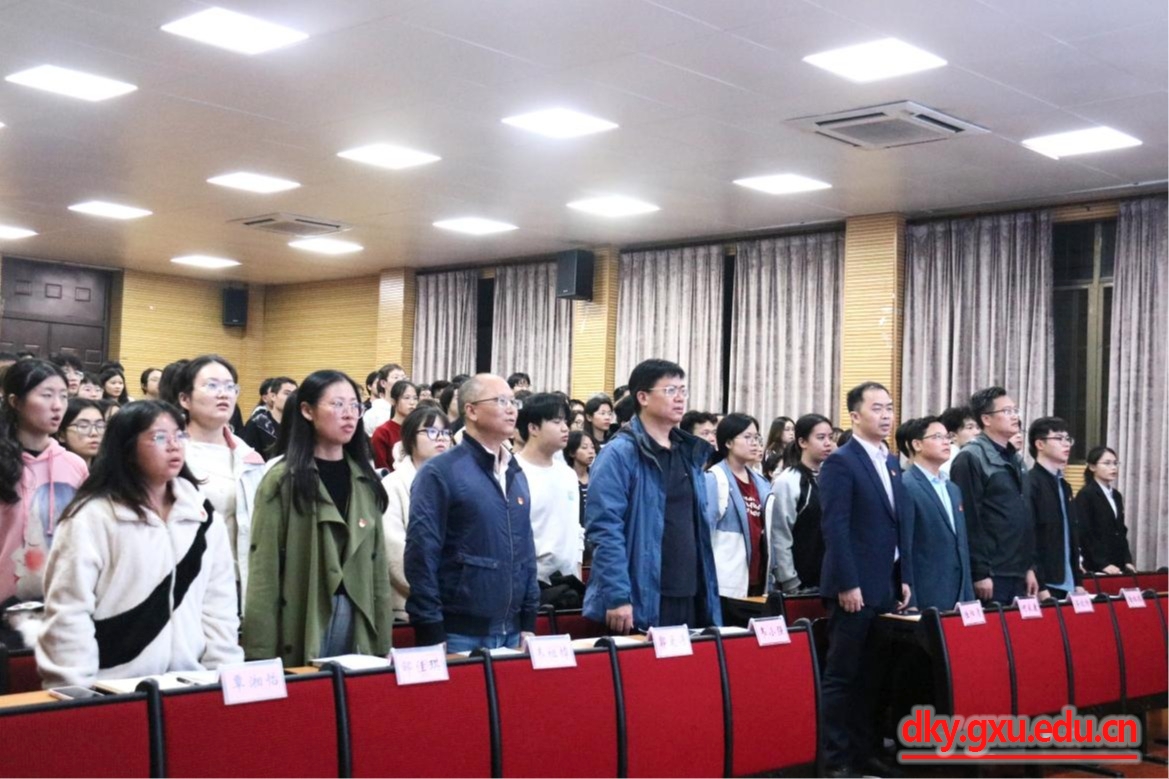 11月5日,2025年下半年广西大学党委党校加拿大pc28预测结果走势分析分党校培训班开班仪式在学院318报告厅举行。加拿大pc28预测结果走势分析党委书记韦小强,院长陆阳清,副院长何家康、韦祖樟、蒋钦杨,团委副书记马朝阳,辅导员邹佳琪、陆维鸿、覃湘怡出席活动,166名培训班学员通过线上线下相结合的方式参加活动。
