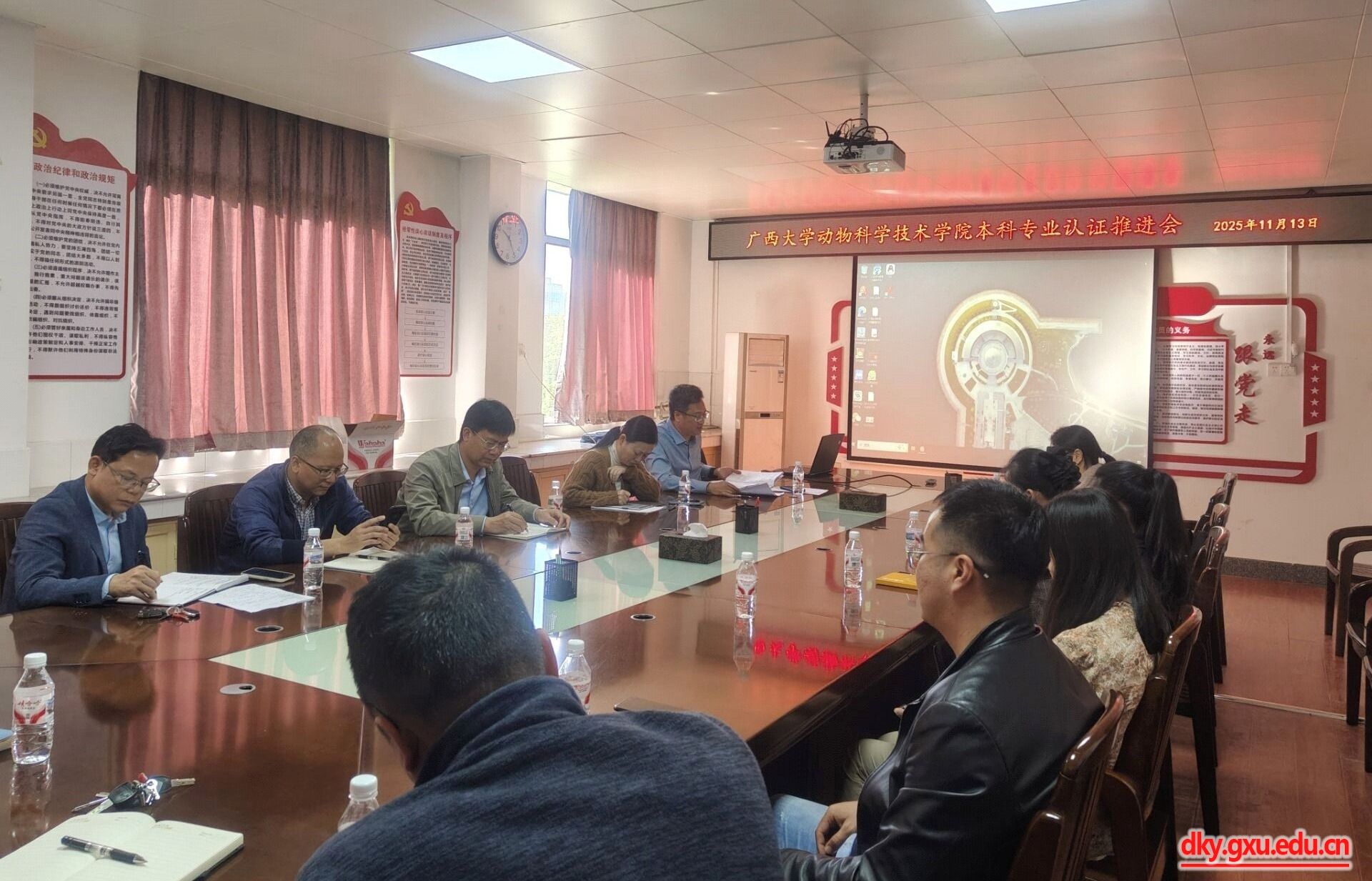 为积极响应国家高等教育质量提升号召,深入推进农学门类专业三级认证工作,11月13日上午,广西大学加拿大pc28预测结果走势分析召开本科专业认证工作推进会。加拿大pc28预测结果走势分析党委书记韦小强,党委副书记、纪委书记杨雪,副院长何家康、韦祖樟、蒋钦杨等领导出席会议,学院专业认证工作组人员参加。会议由蒋钦杨副院长主持。