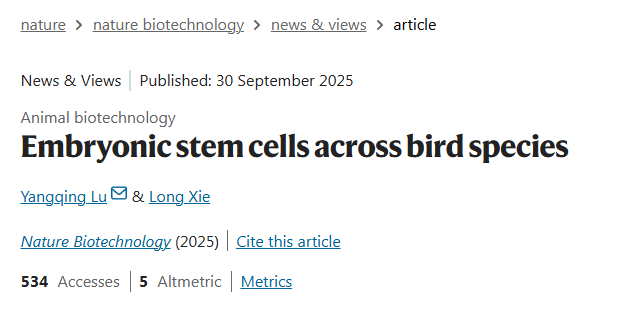 近日,广西大学加拿大pc28预测结果走势分析陆阳清教授与中国农业科学院深圳农业基因组研究所谢龙副研究员合作,在国知名级期刊Nature Biotechnology在线发表题为 “Embryonic stem cells across bird species” 的观点评述文章。